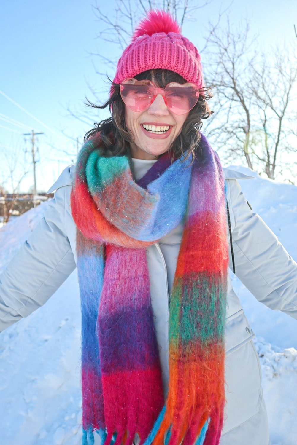 I’m no expert but I also think that wearing a rainbow outfit in the Winter is sure to brighten up anyone’s mood and snag you lots of compliments. It’s a win-win!