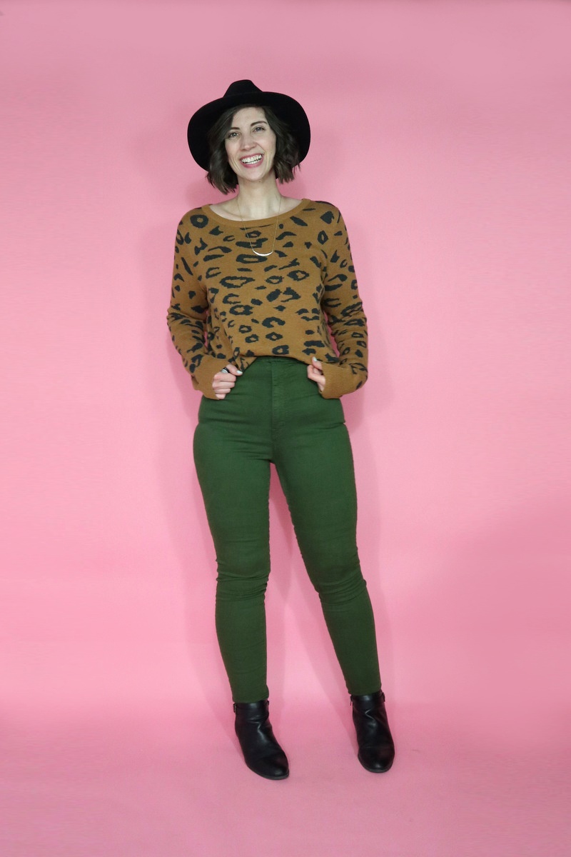 Can you spot the next item I thrifted? It’s a leopard print sweater! Out of everything in this post, it’s been on repeat the most. I wore it 3 times in one week. Yikes!