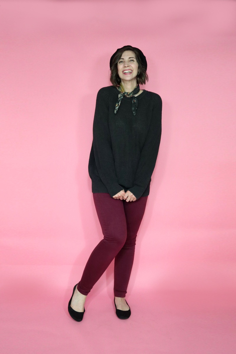 I saw this black oversized vintage pullover sweater while thrifting and grabbed it so fast. This is my favorite cut of sweater and it’s so hard to find!