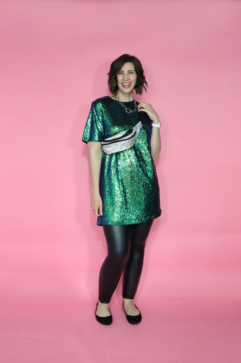 You might think the last outfit is showing off this sequin dress (bought from thredUP many years ago) but it’s actually all about the holographic belt bag! I don’t know how much wear I’ll get out of it but I always love a good belt bag.