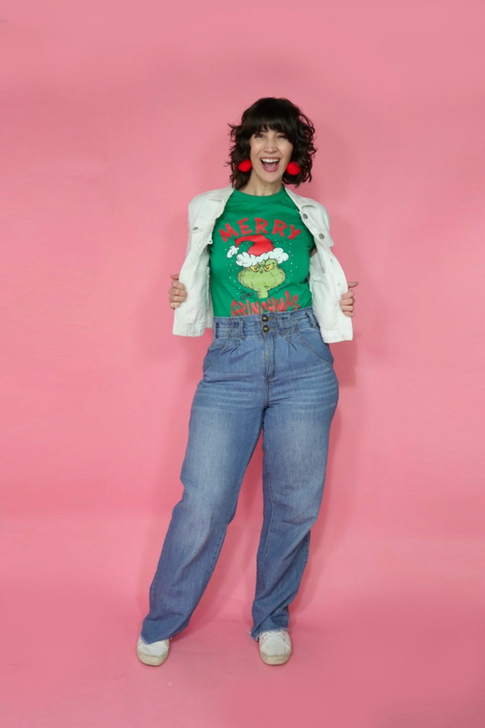 If even the holidays can’t make you wear a skirt, I got you! Embrace the comfort of your favorite jeans and sweaters while adding Christmas-y touches.