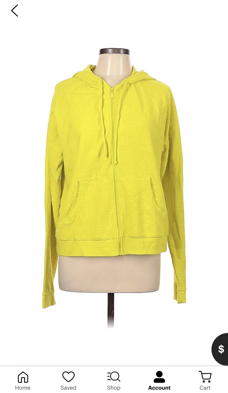 A yellow zip-up hoodie is on my thrifting wishlist and I swear it’s more elusive than Bigfoot! So this isn’t the first time I’ve tried to find one of thredUP (I have a Saved Search for one in the app) but I didn’t love what I got.