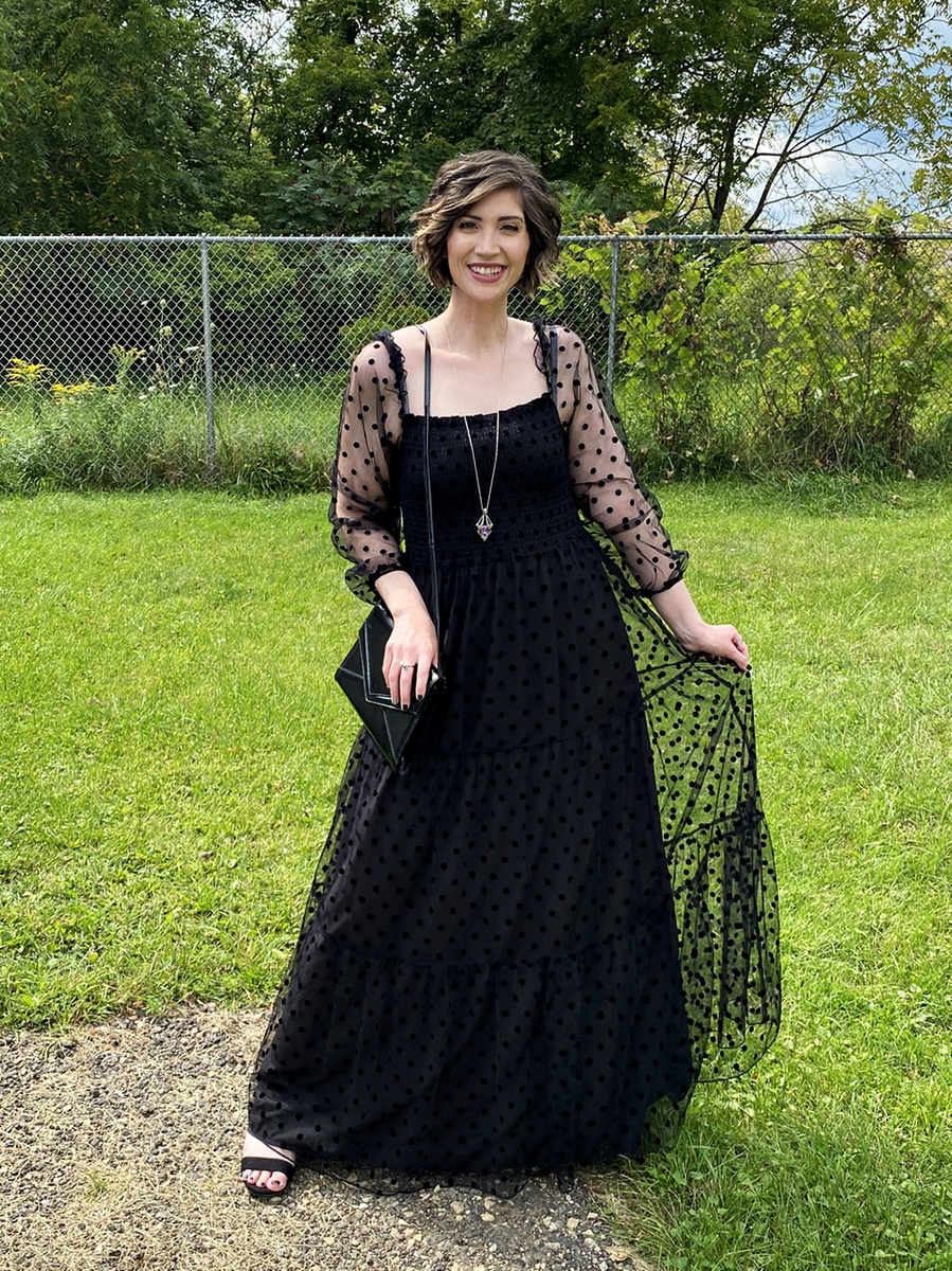 I set out on a mission this year to find a fun but gothic dress to wear to my brother’s Fall wedding and I found exactly what I was hoping for with time to spare! I haven’t re-worn this dress yet but I hope to find just the right occasion soon.