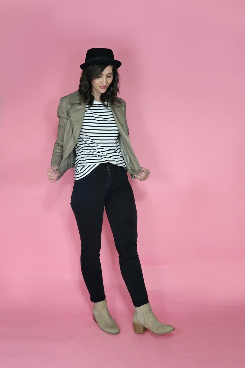 That was a problem I’ve ran into for years so I buckled down and started my year off with a gray turtleneck, striped ringer tee, burgundy crushed velvet cami, and a perfect pink coat.
