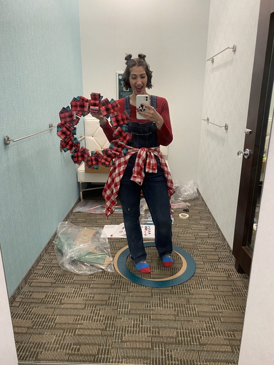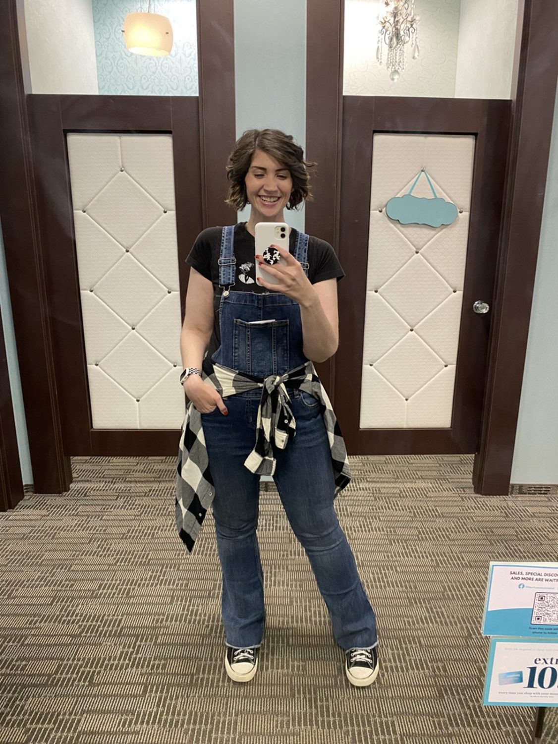 Here are some others ways I’ve worn these flared denim overalls at work (as a social media manager at Maurices) and during my time off on a thrift outing. Clearly I love tying a button-up around my waist to add a little extra pizazz!
