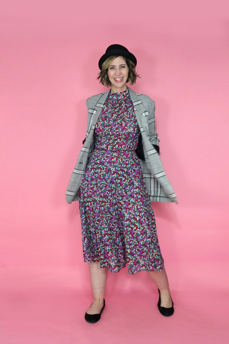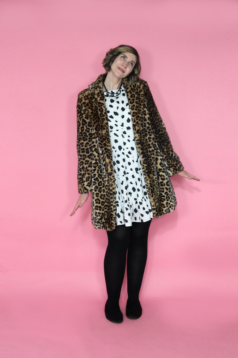 I’m obsessed with this dress! It’s great to grab and go with just a pair of leggings and still feel funky. That’s how I wore it the first time but now I’m branching into pattern-mixing territory… maybe I’ll do a moto jacket next! ?
