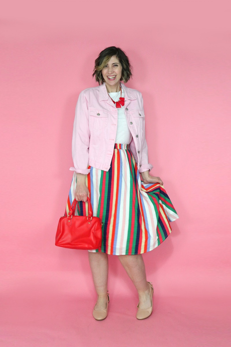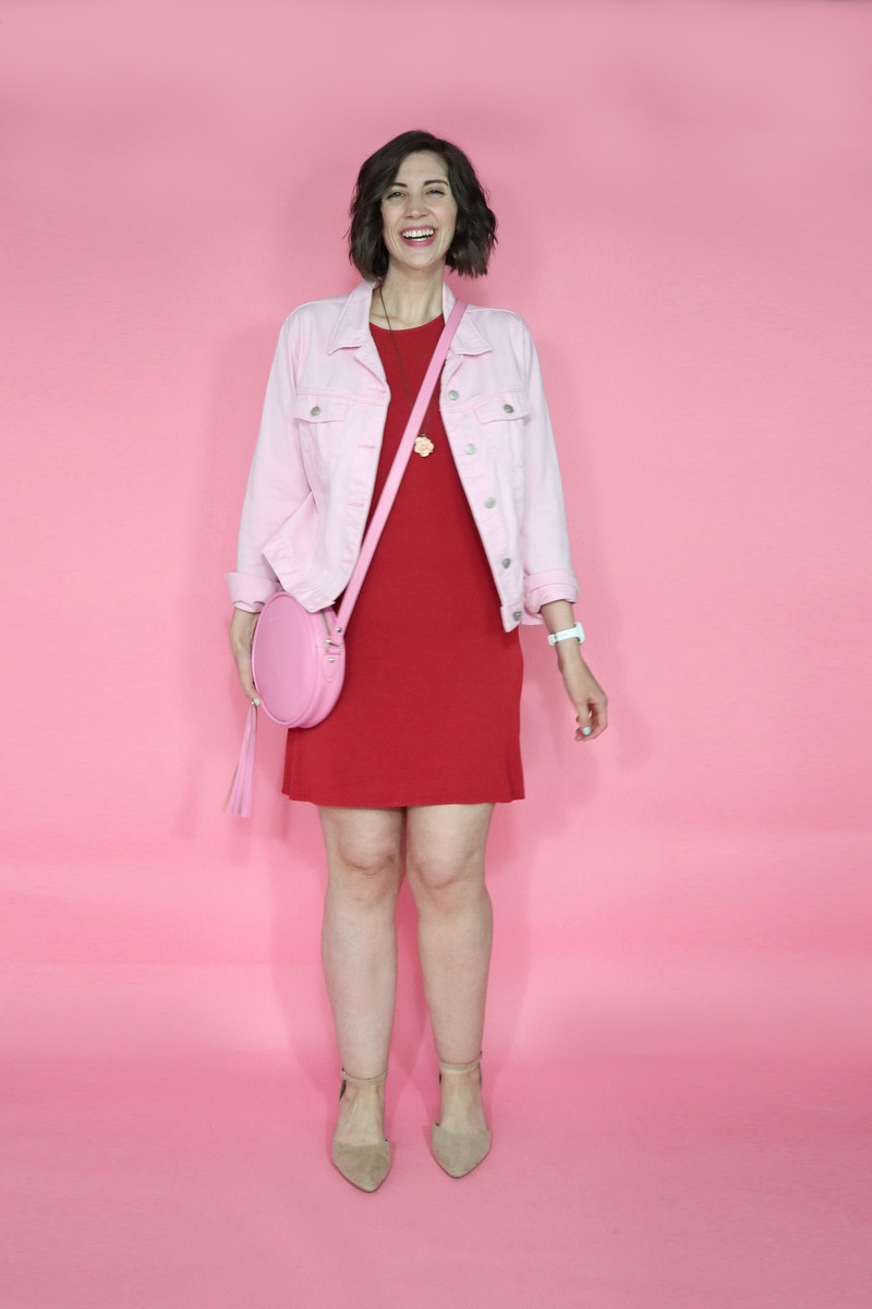 I actually don’t have a lot of pink clothing in my closet (shocking, I know) so I like to wear this jacket with complementary colors like red. Because of that, I think I’ll get a lot of wear out of it around Valentine’s Day!