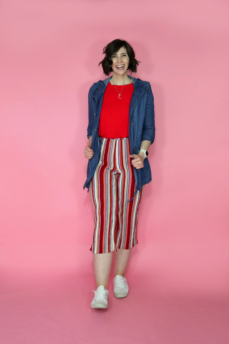 Arguably my best thrift find this year; these red palazzo pants are loved by all. And I love styling them!