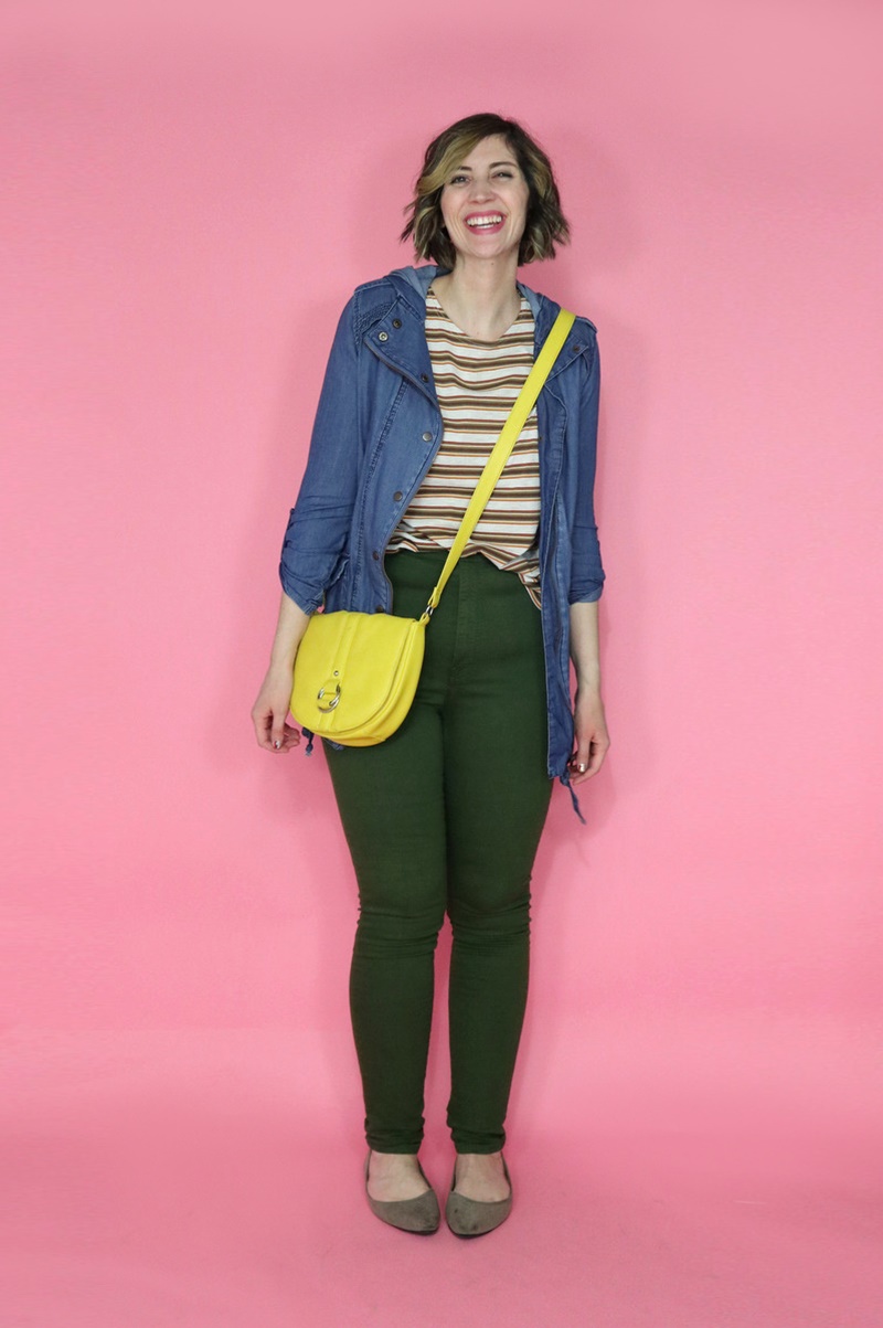 You’ll see them a lot on my TikTok so I tried really hard to come up with a new idea that’s exclusive to this blog. I went with a yellow tank top and white denim jacket! Ketchup and mustard, anyone?