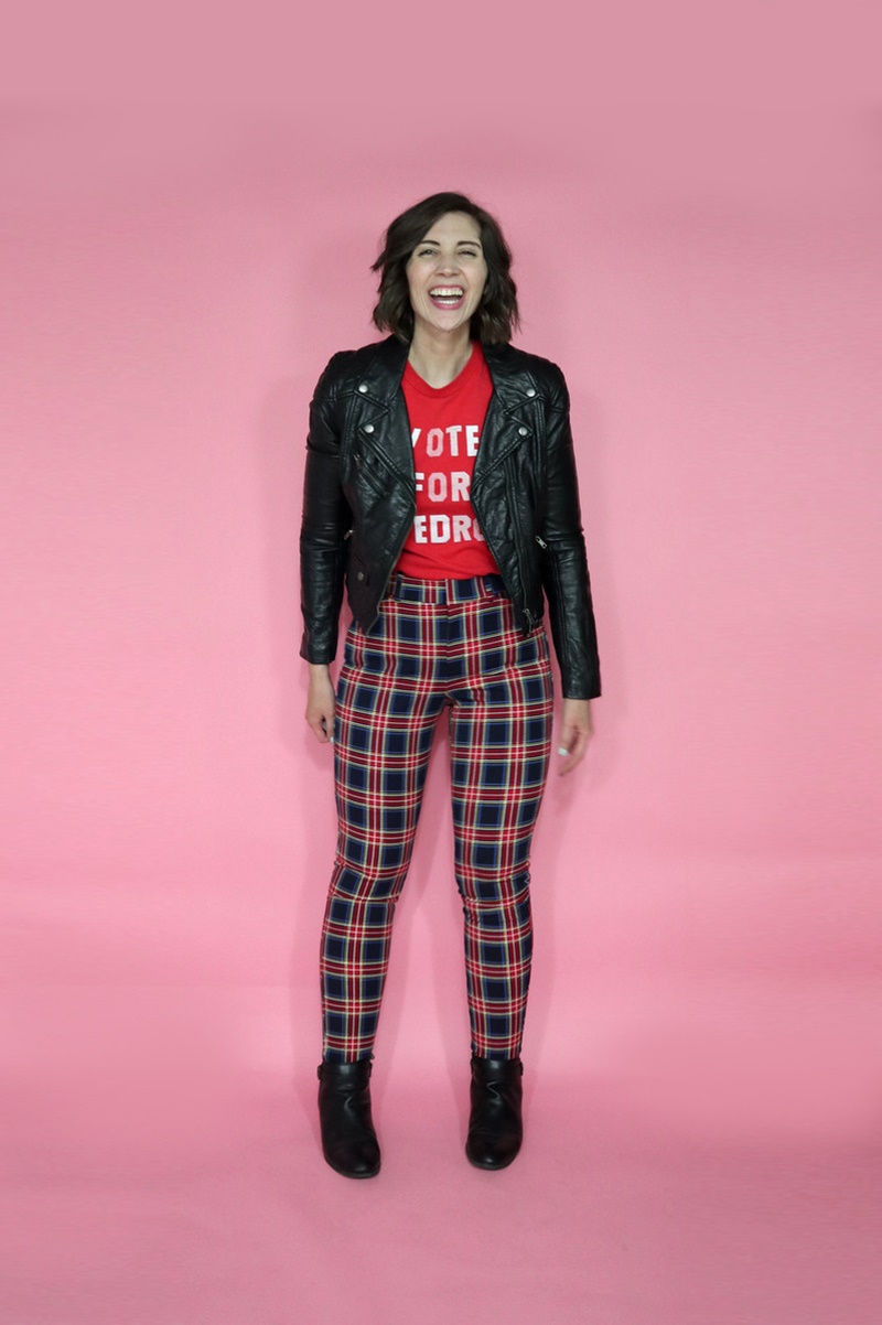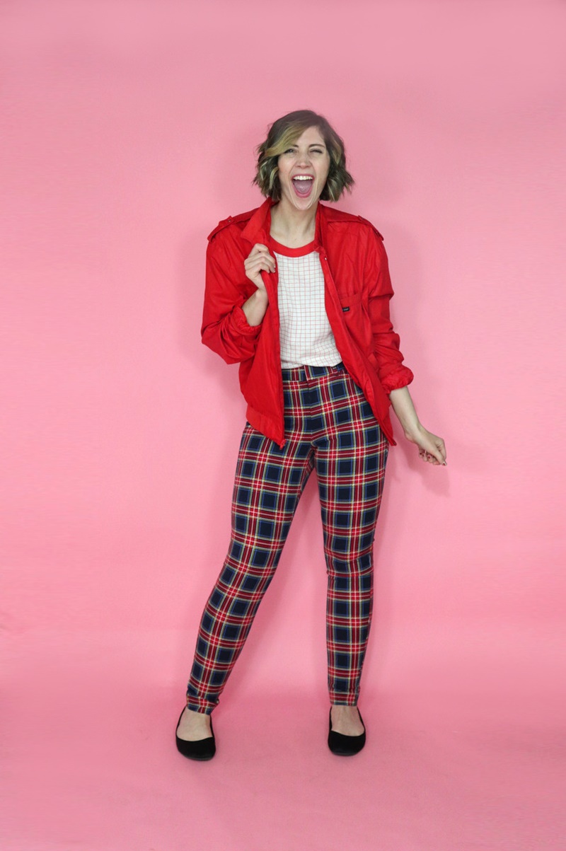 After searching for plaid high-waisted pants for years, the thrift gods finally blessed me with some and I’m trying to not let them down. I continued with the rock’n’roll vibes (funny coincidence that I posed very similarly in both photos!) and topped it off with a true vintage Members Only jacket.