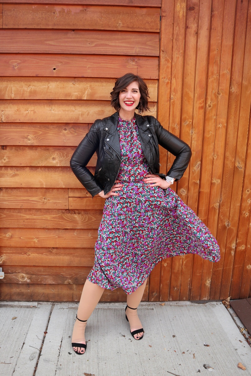 I have yet to have an occasion to wear this green floral dress though I’m sure I’ll wear it to lots of spring birthday outings! For now, I imagined it with colorful tights and a moto jacket. (I swear I wear more than moto jackets! ?)
