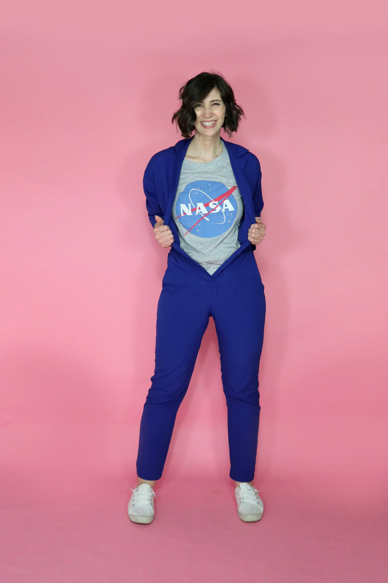 After thrifting this NASA t-shirt from thredUP, I styled it appropriately with a jumpsuit, waiting for my chance to board a space shuttle.