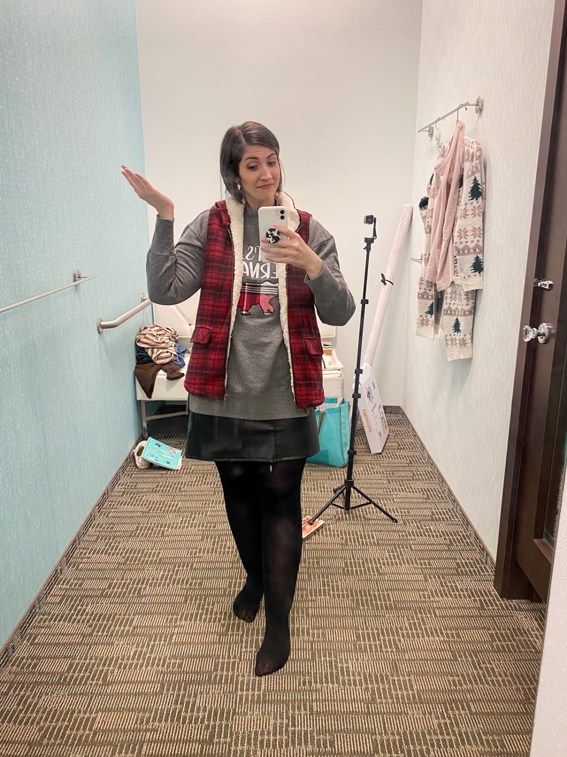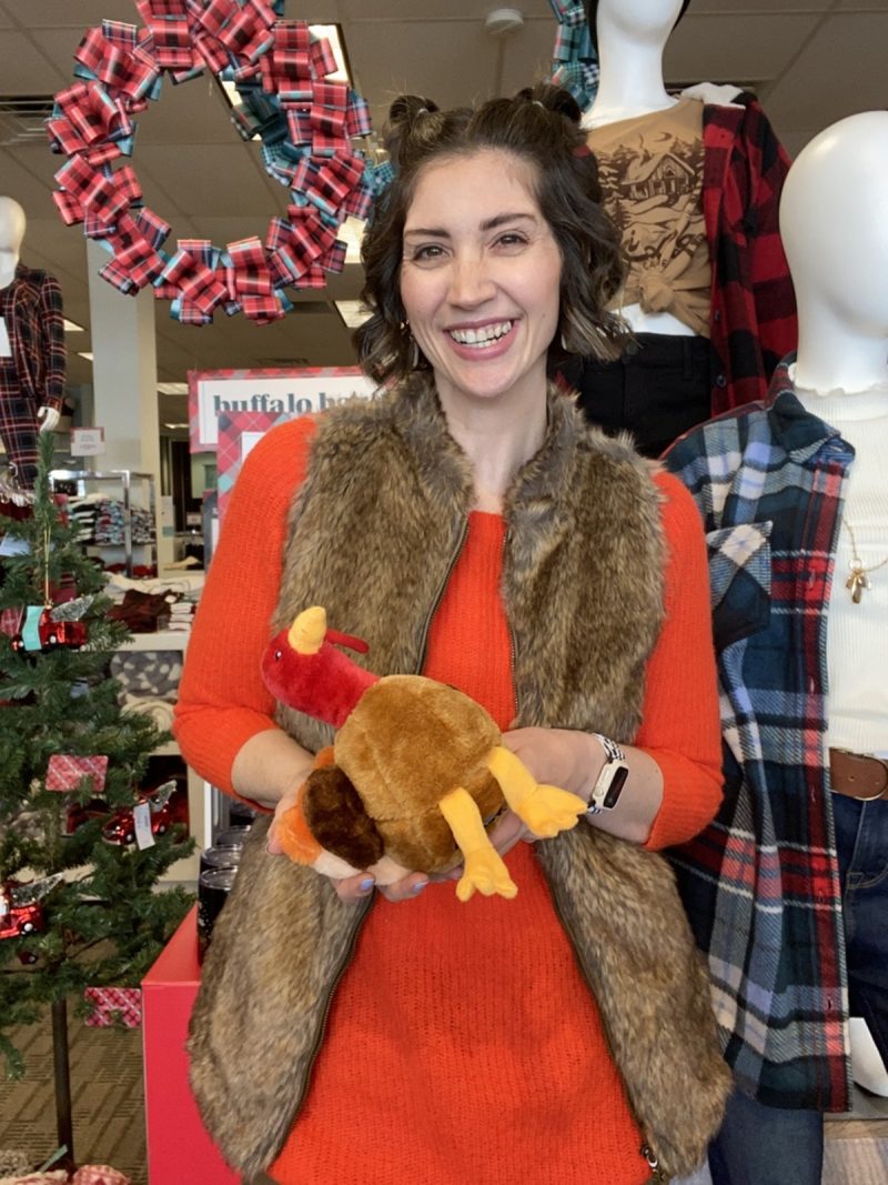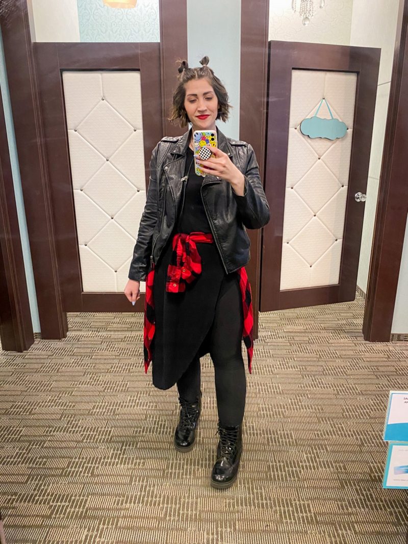 I stepped in to help cover a floor shift for one of the busiest shopping days of the year – Black Friday. Our theme was “black with buffalo plaid” which was fun to channel my inner grunge chick. lol