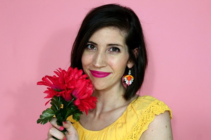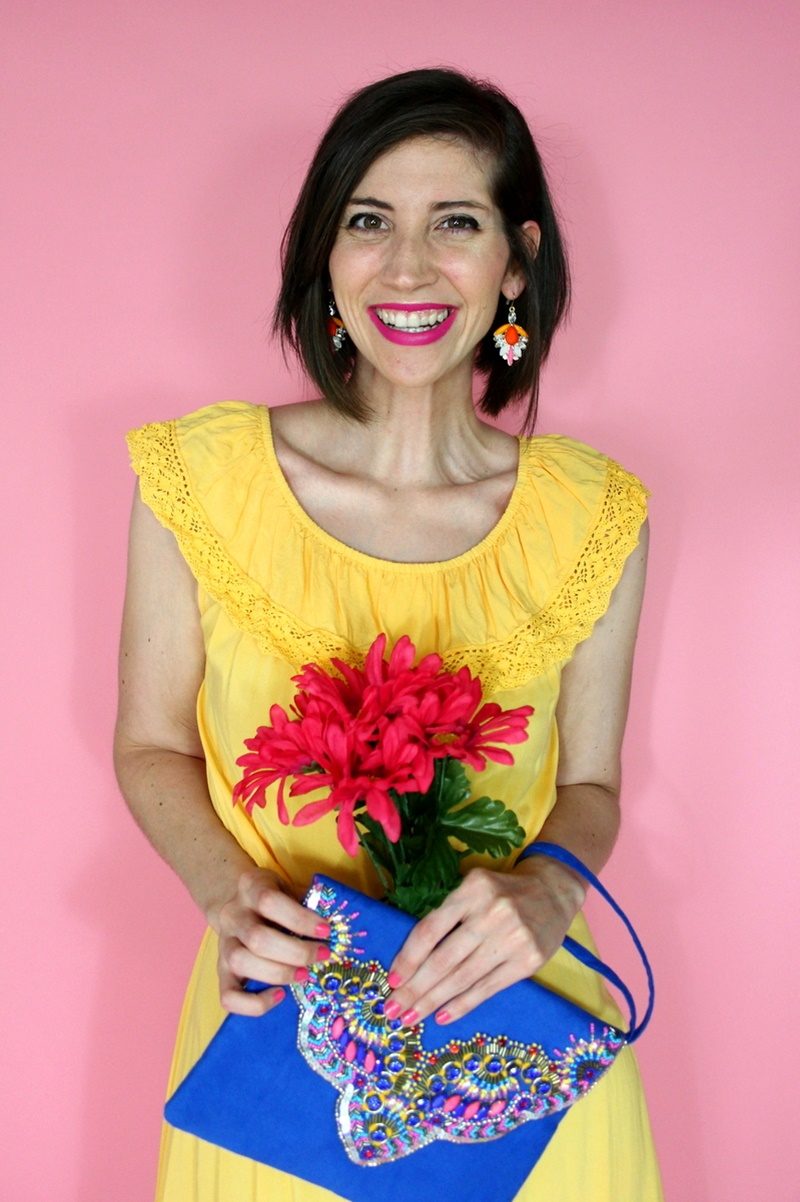 Thrifted dress, $1.50 (shop similar dress) | Outlet store shoes & clutch, $10 (shop similar shoes, shop similar clutch) | Old Walmart earrings, $1 (shop similar earrings) | Colourpop lipstick in Heart On (shop exact lipstick) | Dollar Tree flowers, $1