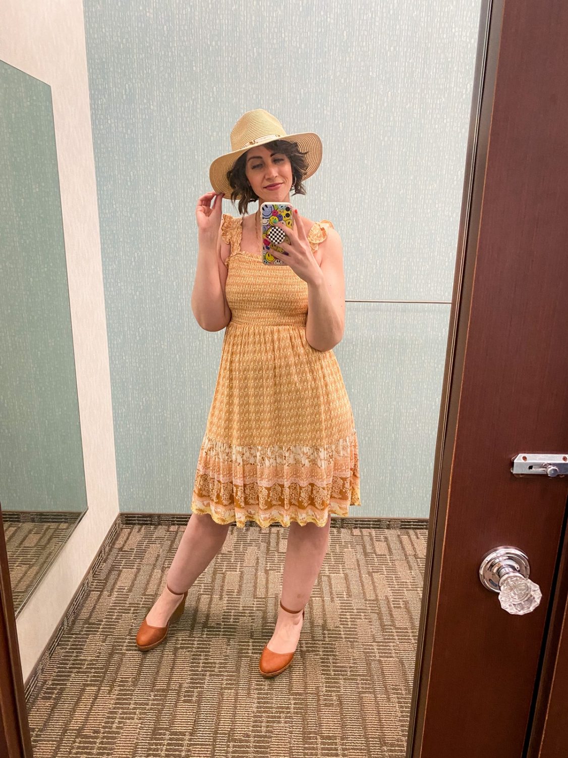 This set of outfit photos is what I wore TO work, meaning the clothes were my own, mainly thrifted, and just what I wore to run around the store in.