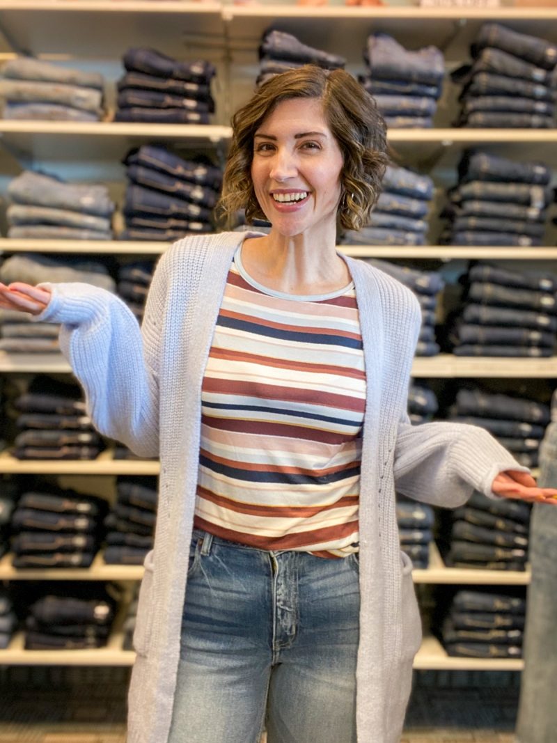 While most of my work is done from home, wearing the same leggings and sweatshirt too many days in a row; I do try to pop into the store once a week to check in with my team and create content around new arrivals.