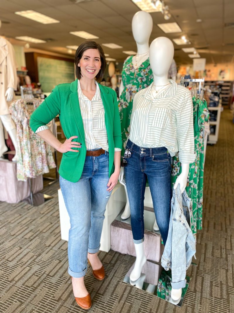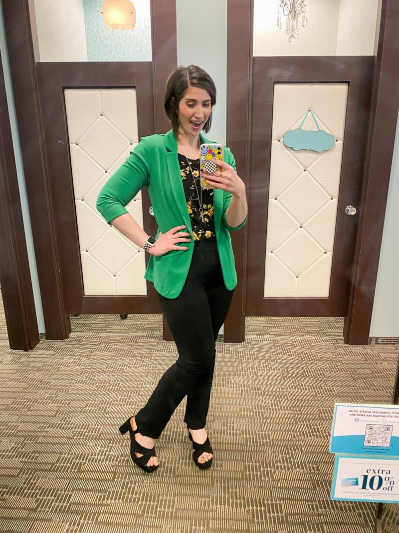 The other look, featuring the emerald jewel green blazer is something I would totally put together from my own closet. Plus, this blazer comes in a plethora of other colors so if green isn’t your thing, maybe another color will catch your eye!