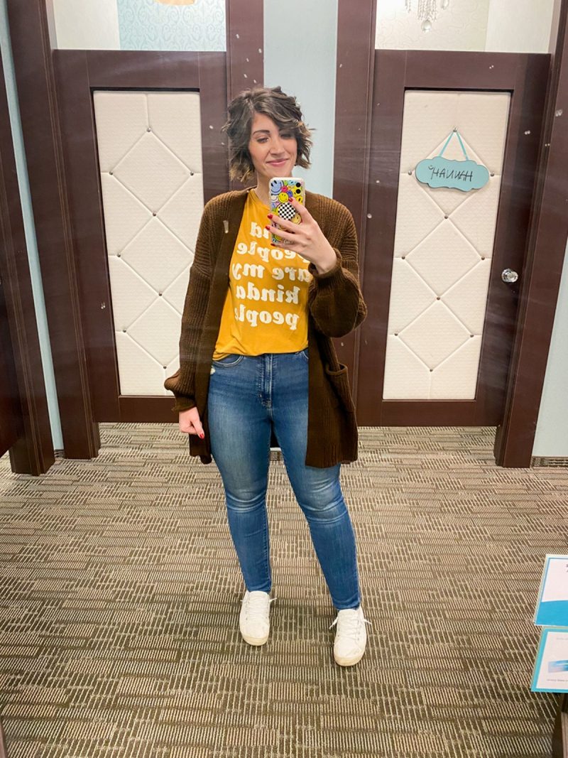 Denim is always in style and I’ve been trying on LOTS of styles this season! I ended up falling in love with the edgely straight leg high rise jean. I tried them on for a fashion challenge and ended up buying them! They’ve now gotten worn at least 2-3 times a week. Worth every penny!