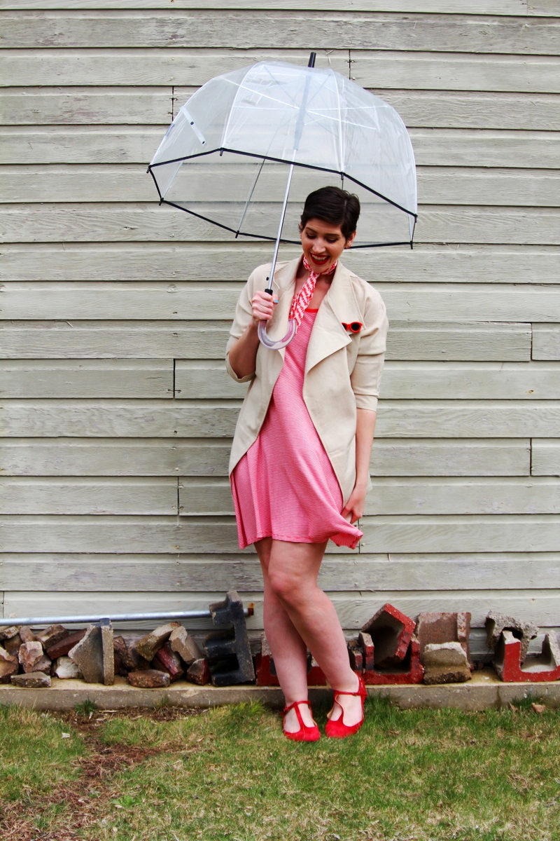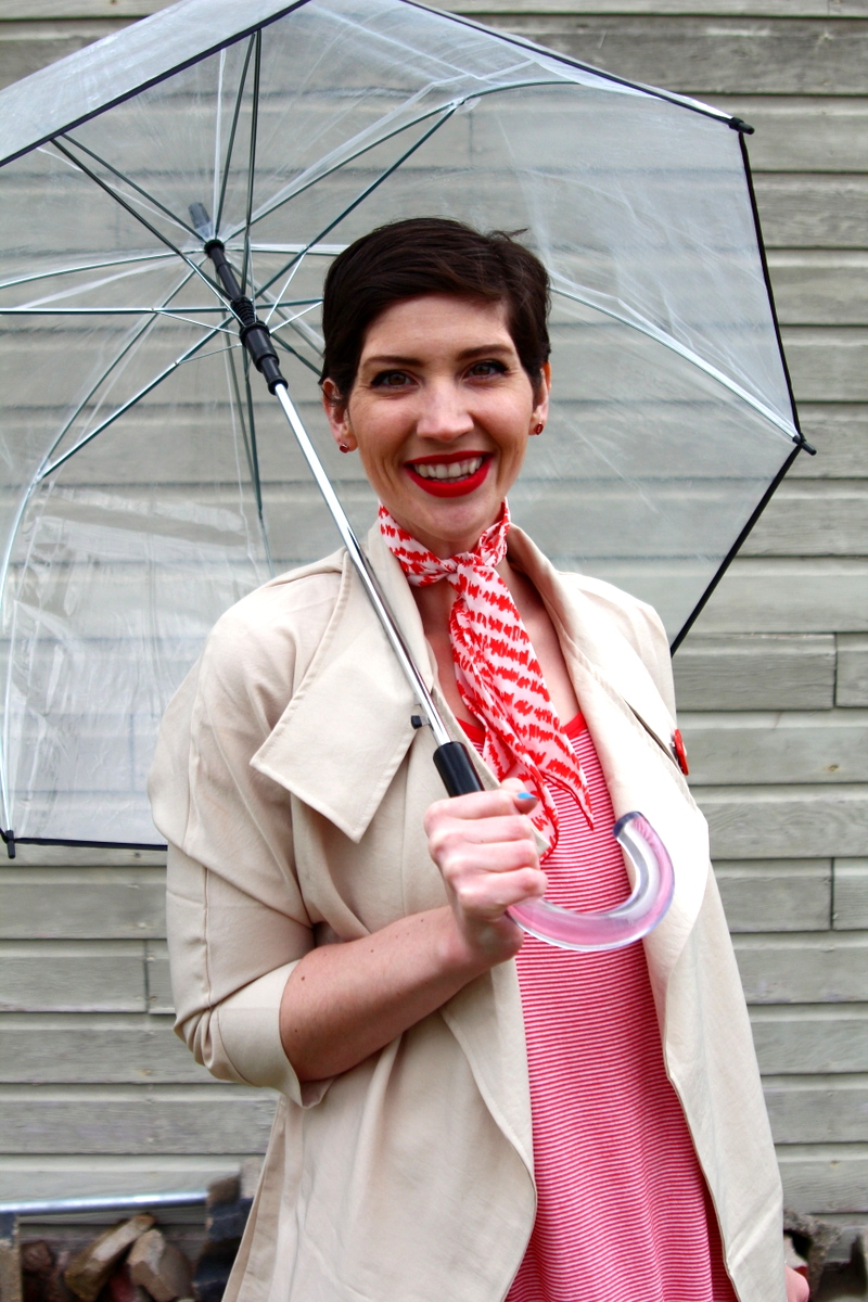 Of all the fashion media that I digest, it was actually my sister that clued me in to these bubble-style umbrellas. It’s so retro and I love that it’s transparent because it both matches any outfit I’m wearing and makes me more aware of my surroundings.. like a low flying bird getting ready to poop on me.