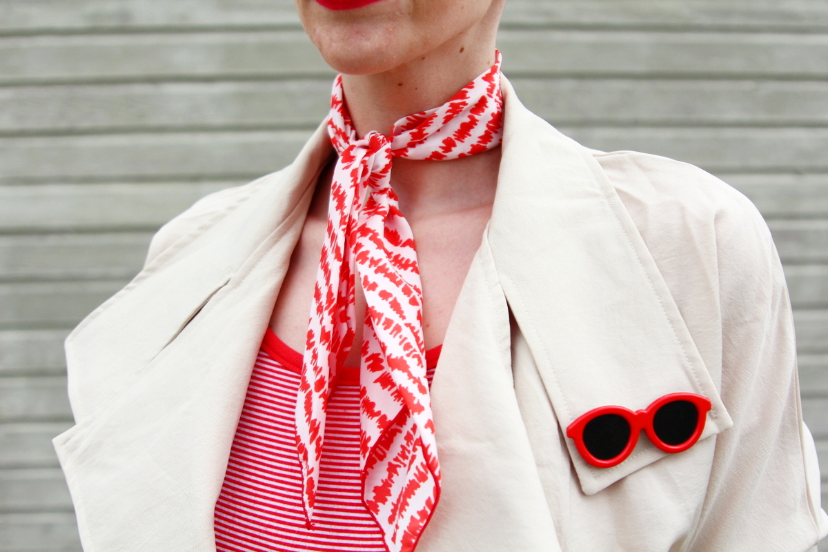 Thrifted dress, scarf, and pin, $2 total