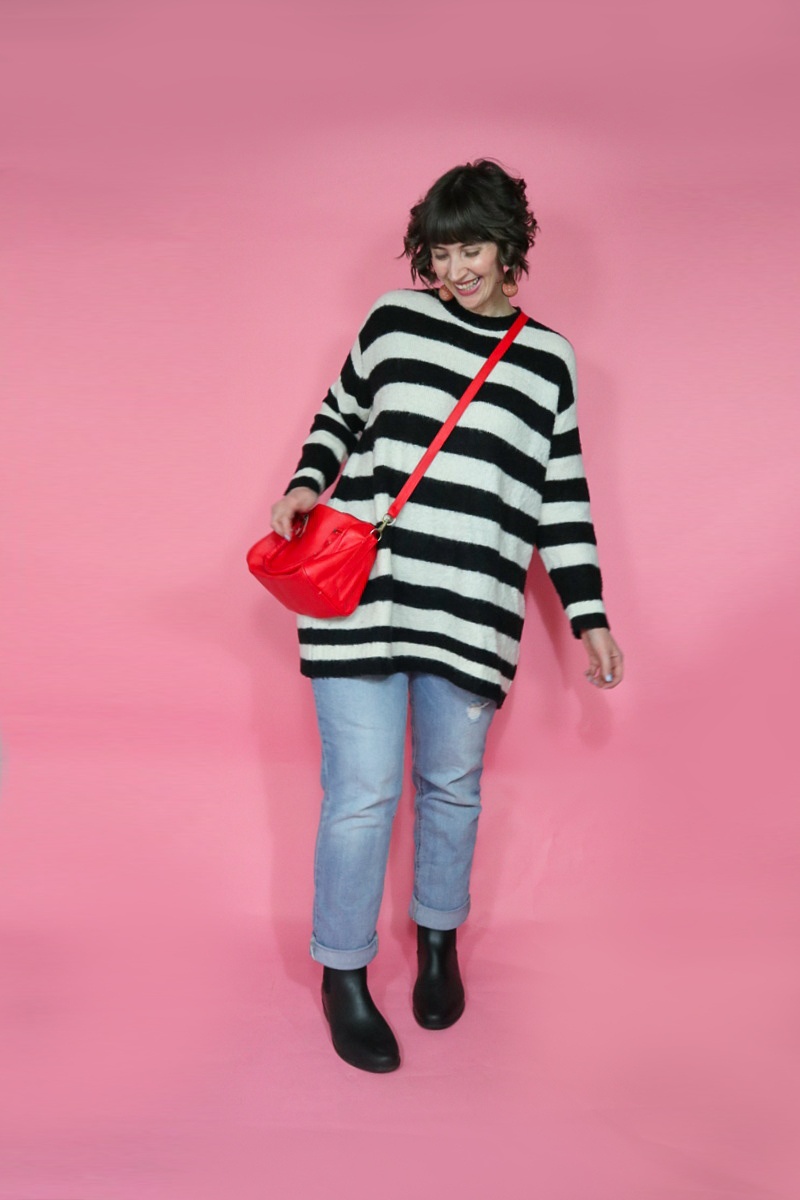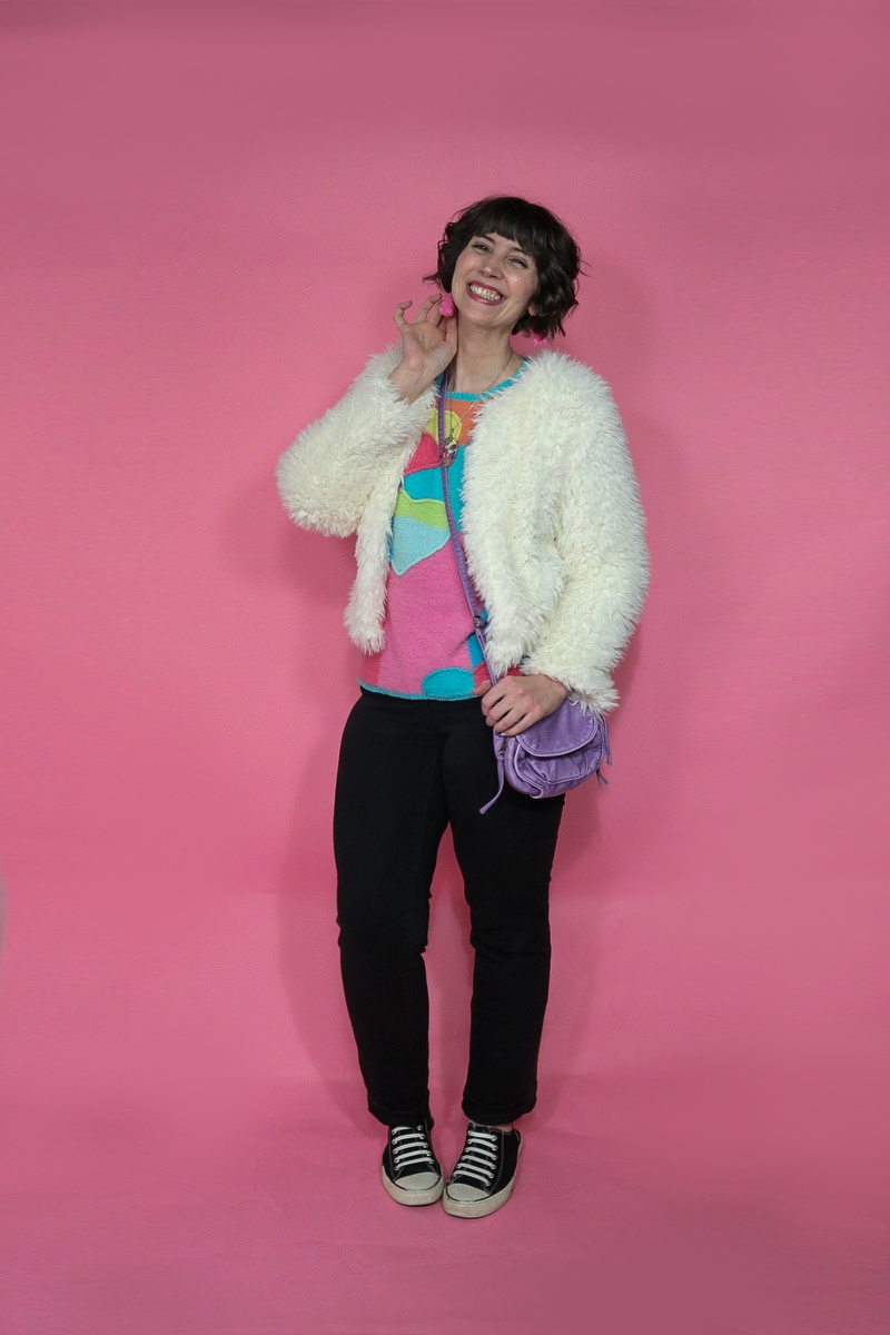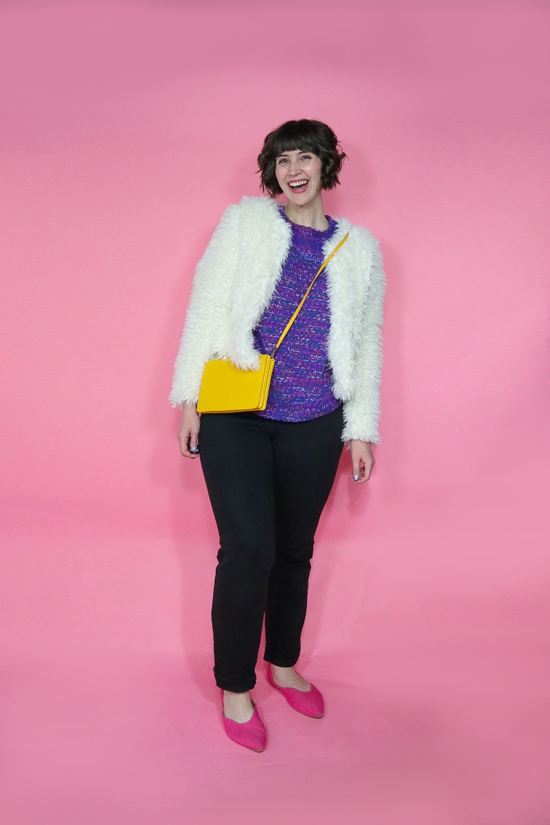 I thought it was funny (and also fun!) how many outfits were styled around this thrifted fuzzy white jacket. I don’t wear it often in real life—in fact, I can’t remember the last time I really did wear it!—so I appreciate all of these ideas for how to wear it with things in my closet.