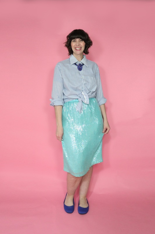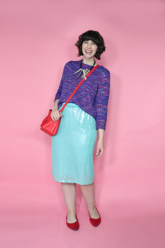 Nothing can get you through the long, dark days of winter like sequins! For me, I chose this beautiful vintage teal skirt that I thrifted last summer.