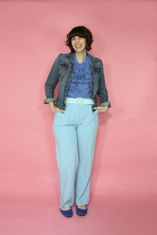Fun pants are just a staple of my life year-round, but for the purpose of this challenge, I chose a powder blue pair of trousers.