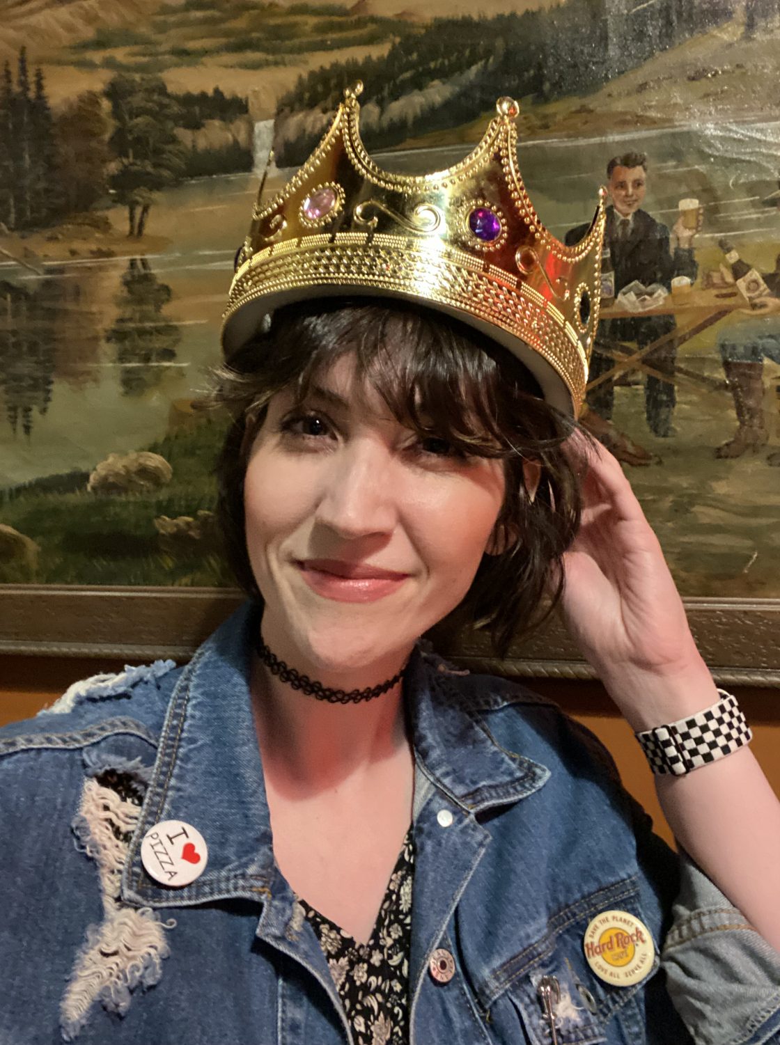 My pin collection is HUGE so I had fun carefully selecting which ones fit the theme of ’90s fashion. What do we think?!