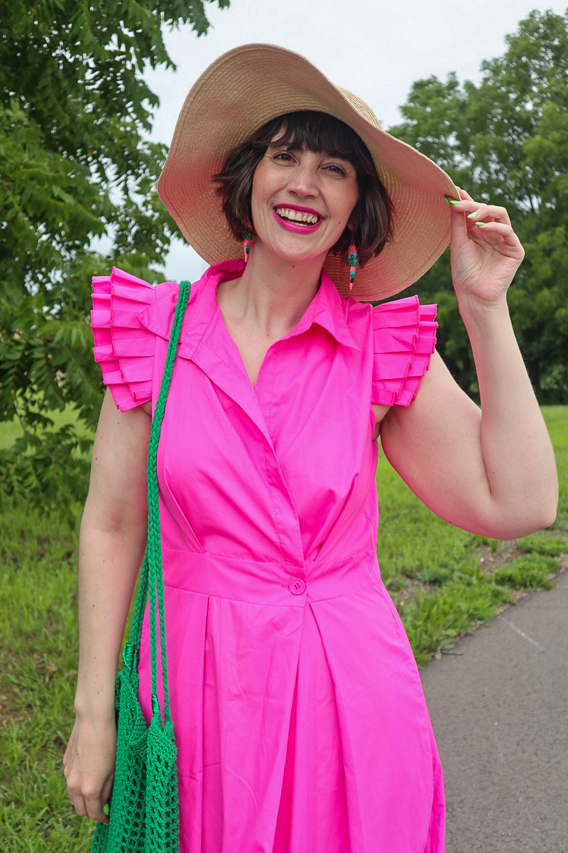 I saved the best for last-this stunning Barbie pink maxi dress I thrifted last summer! It just screamed to be styled for an adventure and, while I didn’t go outside my hometown this summer, this was a stunner to dress up for a regular day in my life.
