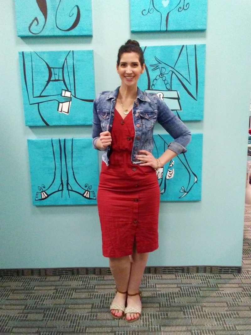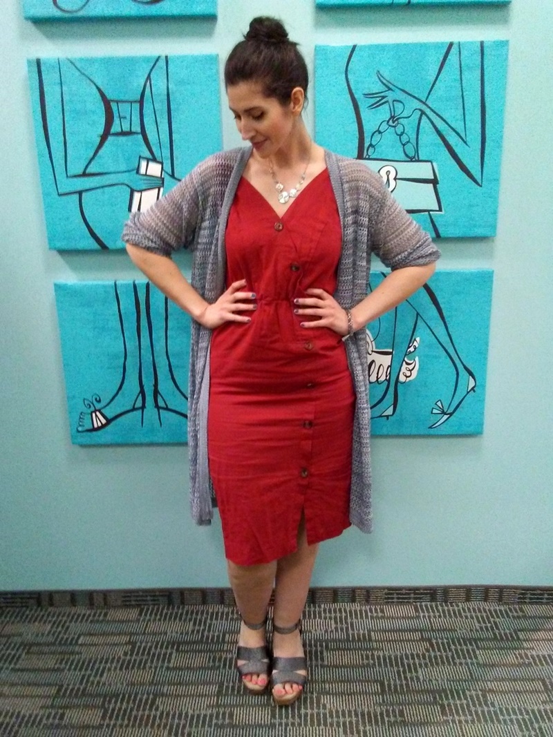 This time, we were challenged to style them for a “work look” and an “off duty” look. I couldn’t decide which was which for me; I just had fun styling this red linen dress!