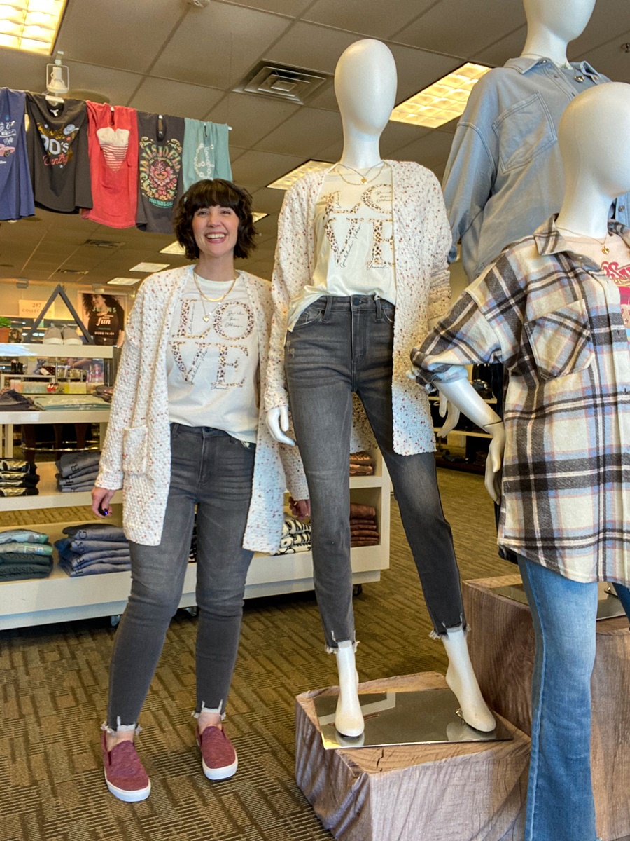 We’ve had a big focus on denim and athleisure this year. So if “dressing up” seems intimidating to you, there’s some good news, right? Cool and casual styles are trending, so you can look in style without really trying. We’ve got lots of great jeans, leggings, and toppers to help you update your everyday look!