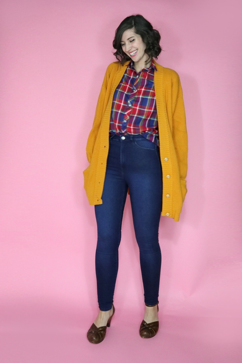 My best December thrifted clothing find is the yellow cardigan on the right that I bought from Swap.com. The only thing I have to compare it to is a vintage golden yellow sweater from a couple years ago, as seen on the left.