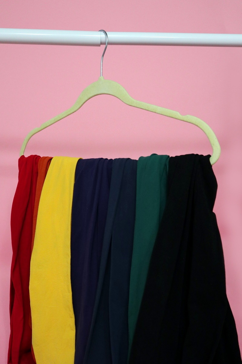 • Display tights. You can choose to fold tights over your hanger or tie a loose knot so they don’t slip off. See more of my tights collection and tips for wearing them in this post!