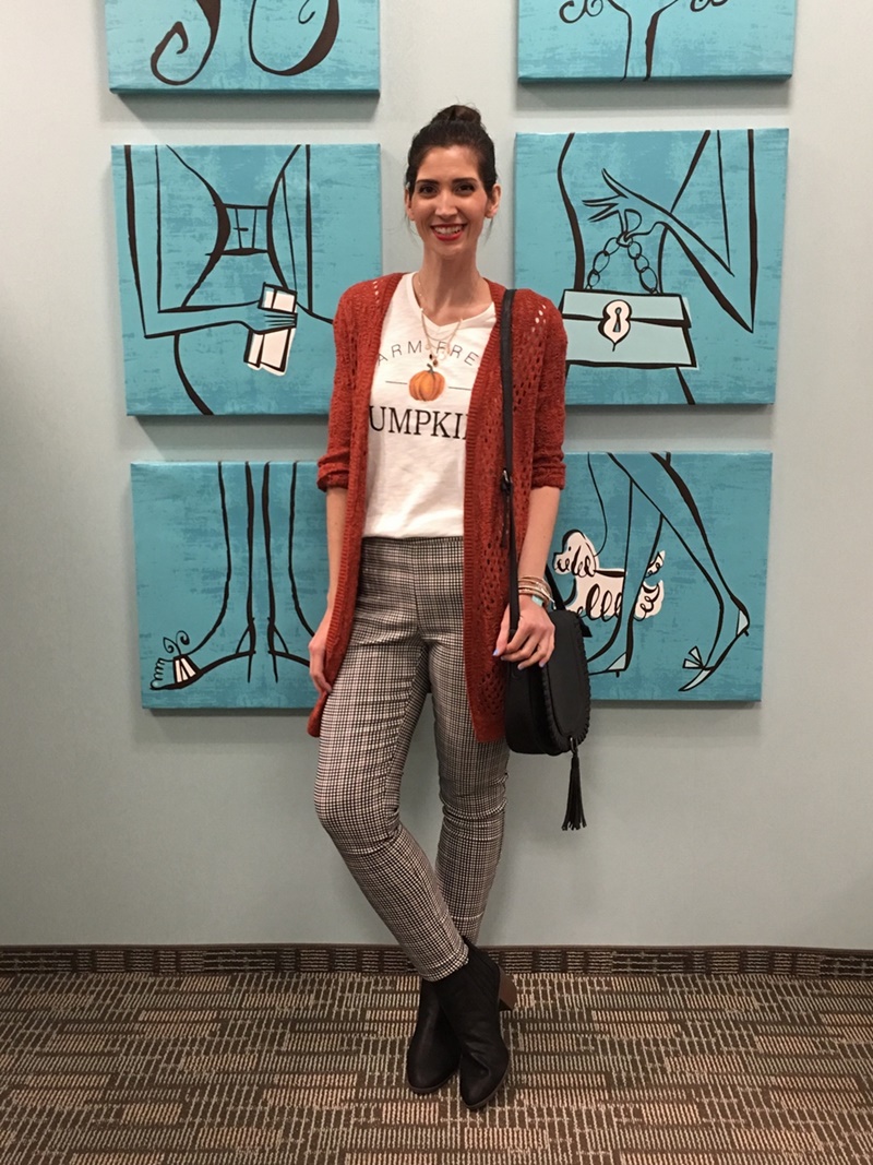 Maurices pants | Maurices booties | Maurices purse | Maurices orange cardigan | Maurices pumpkin tee | Maurices moto jacket